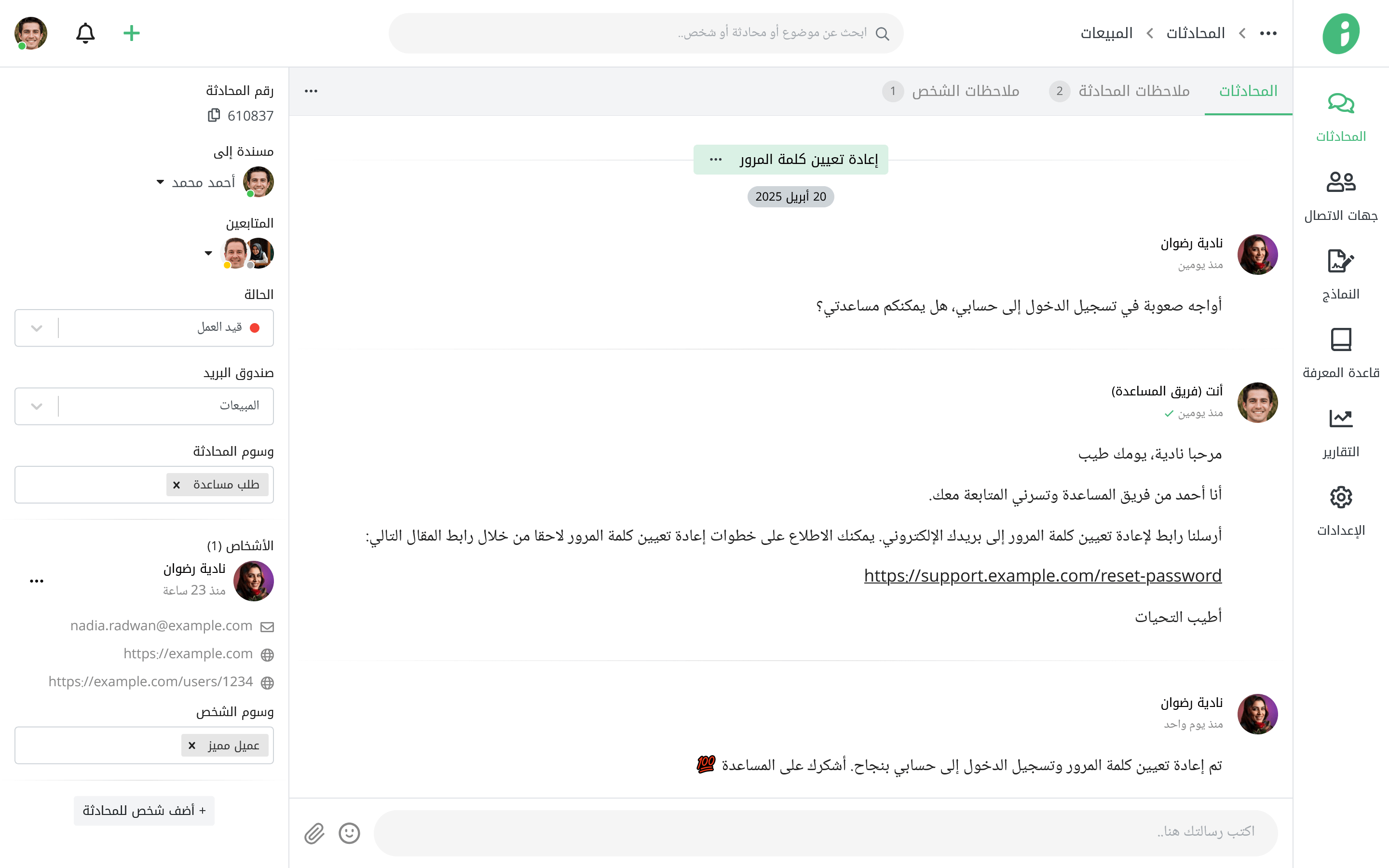 برنامج خدمة عملاء يوفر تذاكر ودردشة مباشرة وقاعدة معرفة وإدارة علاقات العملاء CRM لتقديم تجربة تواصل يستحقها عملاؤك.
