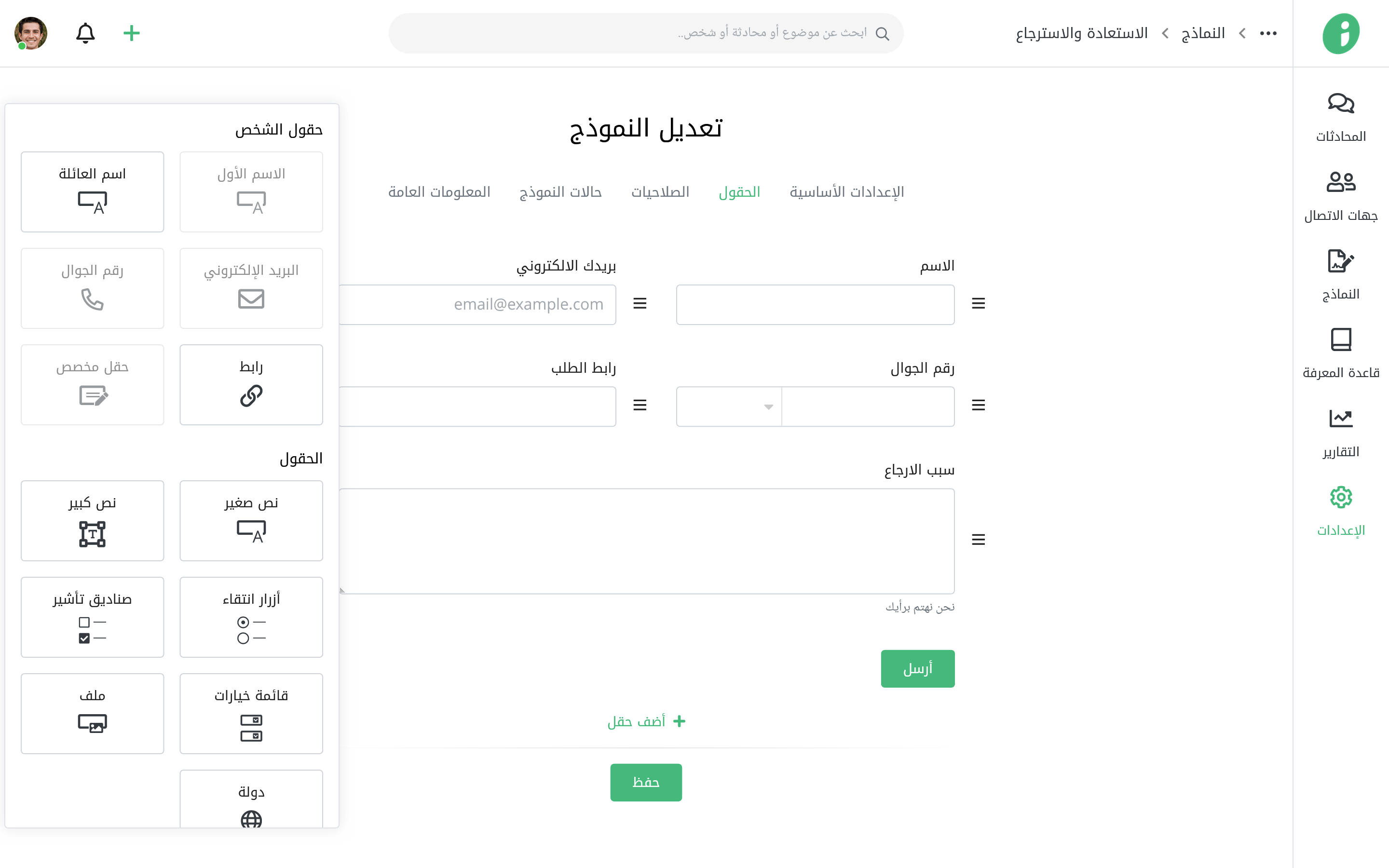 أضف النماذج إلى موقعك ومكن عملاءك من التواصل معك، واستقبل طلباتهم ورسائلهم في مركز المساعدة.