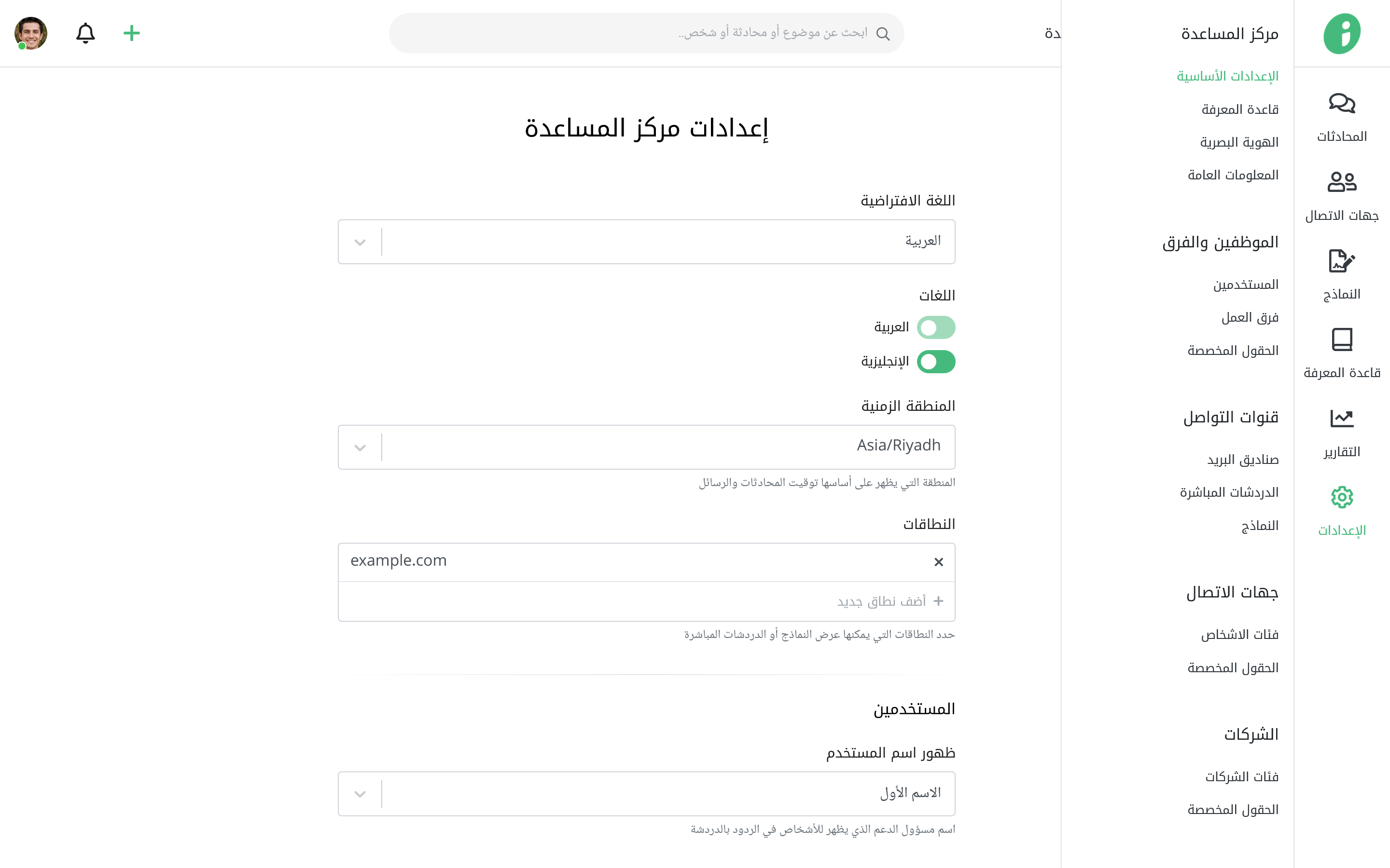 استخدم إعدادات مركز المساعدة للتحكم ببيانات العملاء وصلاحيات الفرق وخصصها لتناسب طريقة عملك.