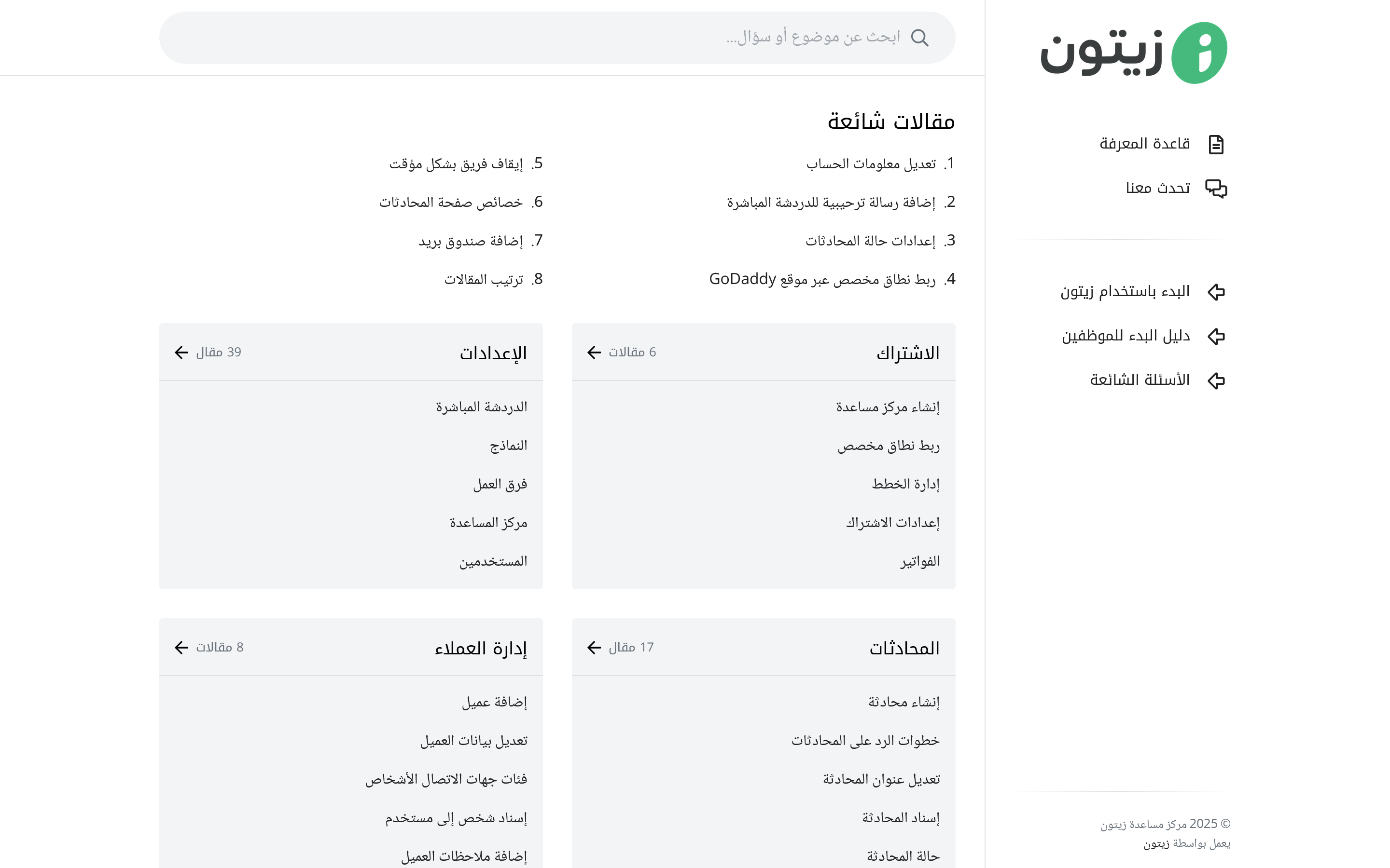أنشئ مركز مساعدة مجاناً جرب زيتون الآنكيف يحسن زيتون من خدمة عملائك