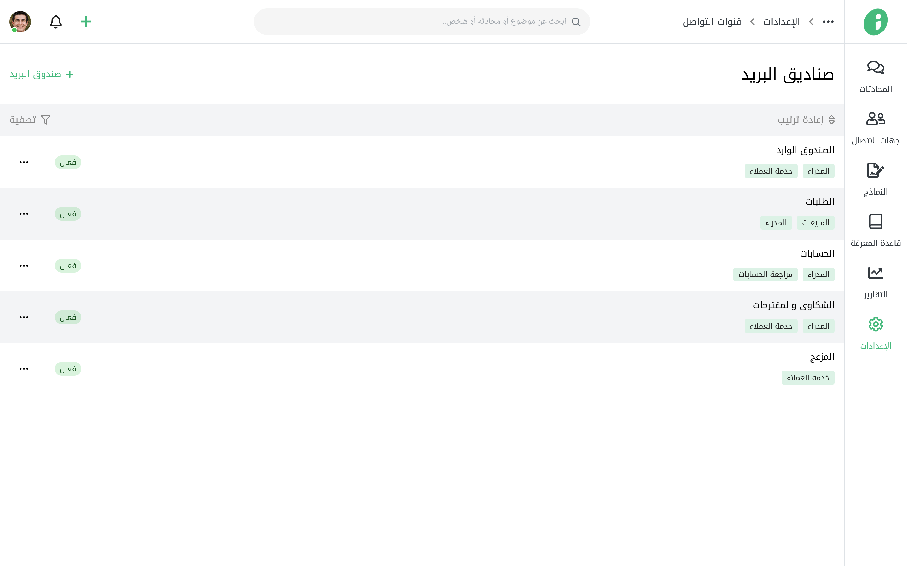 خصص صناديق بريد مشتركة بما يناسب عملك وسهل على فرق المبيعات والدعم الفني التعاون داخل مركز المساعدة.